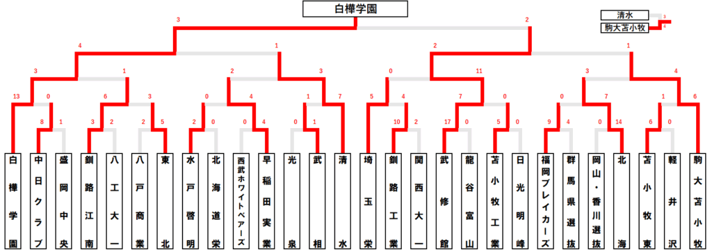 | 白樺学園 | 駒大苫小牧 | 光泉カトリック | 勝敗 | |