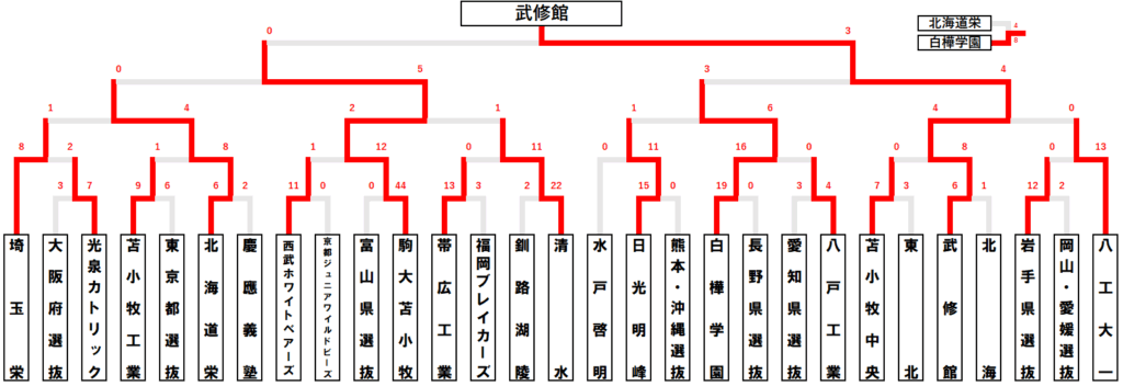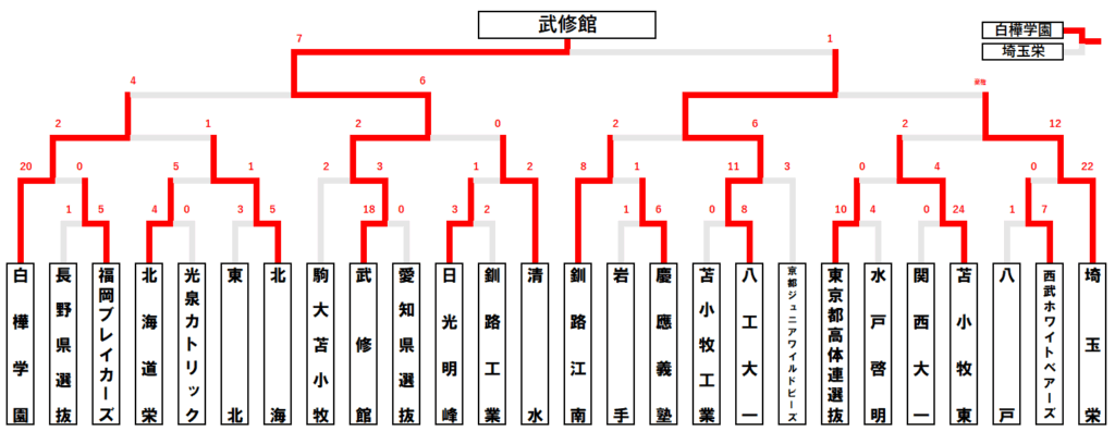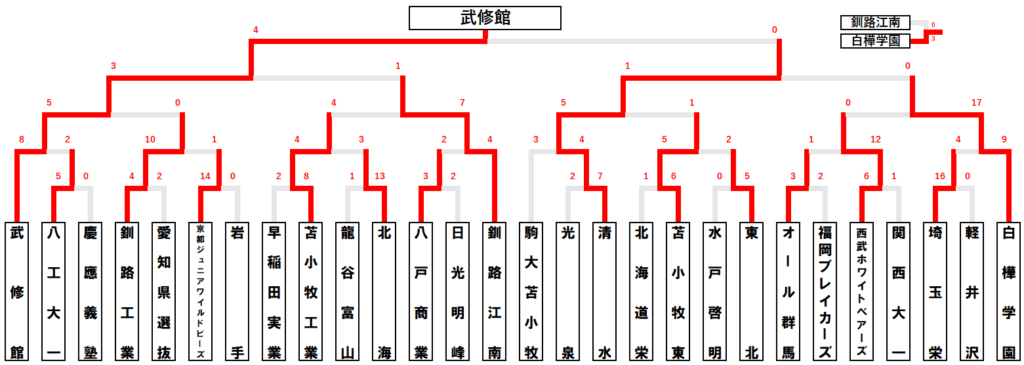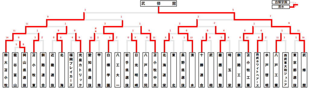 | 武修館 | 東京都選抜 | 水戸啓明 | 勝敗 | |
